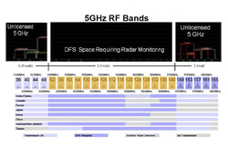 だが一方で「5GHz/UNIIバンド」は誰もが無条件に使用できる帯域ではない。元々は防衛レーダーや気象レーダーが優先的に使用するための帯域なので、当帯域にスイッチングする際にはあらかじめ帯域が防衛・気象レーダーなどが使っていないか、1分間ほどモニターしなければならないというルールが決められている。