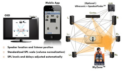 WiSAが従来から特徴とする「My Zone」機能は、ハードウェアリモコンに超音波の発信器を搭載し、ユーザーがコンテンツを鑑賞したい位置で「My Zone」ボタンを押すと、瞬時に音圧レベルやディレイなどの設定をリスニングポジションに合わせて自動調節してくれる。現在はスマートフォン対応が完了しており、「MyZone」アプリを使って、ユーザーがGUIを見ながら自動でスイートスポット設定が行えるようになっている。