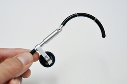 イヤーハンガーはシャフトが伸縮して、耳元に装着すればしっかりとフィットして簡単に外れないよう設計されている。シャフトは360度回転するので、ドライバーが耳穴に対して最適な角度でフィットするようにも工夫されている。歩きながら音楽を聴いてもドライバーの向きがぐらつかないため、一定して高品位なリスニングを楽しむことができる。