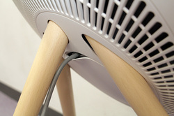 初見でこれをオーディオコンポーネントだと言い当てられる人はいったいどれほどいるだろう。直径70cmの円盤型。しかもワンボディ。3本の木製スタンドで自立させたり、壁に掛けたりしてセッティングする。本体上部の裏側にはタッチセンサーが採用され、指をなぞるように動かせば、ボリュームのアップダウンやミュートが行える。さらに、オプションでブラックやブラウン、シルバーといったカバーも8色用意。また、木製スタンドもメープル、ビーチ、オーク、ウォルナットのいずれかをチョイスできるという徹底ぶりだ。