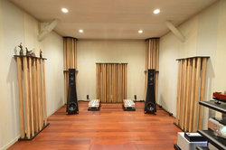そこで低音域の処理と中高音域の歪みを取ることが重要と考え、前方の両コーナーに150cm高の〈コーナーアンク〉を設置したところ、耳の痛みはすっかり消え、音に深みが出てきたという。さらに上段に〈コーナーアンク〉を追加し、天井まで届く高さにすると、音楽に立体感が加わり音色も改善。そこで〈コーナーアンク〉は天井高までの高さで設置することに。