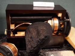 他にも、磁気回路のボイスコイルボビンにも木材を採用、キャビネットはチェリー無垢材に響棒を入れ、竹の響板でも音響を調整、吸音材もメイプルのチップと、木材にこだわっての各部チューニングも継承している。