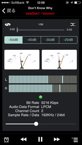 唯一残念なのは、ラトックのWiDrawerアプリの音楽プレーヤー機能がシンプルすぎること。カバーアートの表示には対応しているものの、コントロール機能は再生と停止、曲送りとシークエンスバーによるサーチ、ループ再生が設定できるだけと少し寂しいメニュー構成だ。そこで今回は、Wi-Fiストレージアダプターに対応するほかのハイレゾプレーヤーを使ってみた。