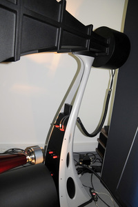 まずはフロントバッフルの美しい外見と強靭さに注目して欲しい。アルミと樹脂を高温でプレス成形した構造によって剛性の高さと共振対策を両立させたことに加え、表面の平滑性の高さはバッフル面での回折を抑える効果も併せ持つという。内部の補強材の位置や質量もコンピューターシミュレーションによって厳密に管理されており、フロントバッフルと背面は複数のボルトで連結して共振を抑えている。