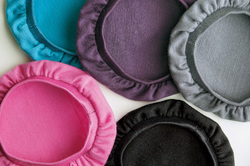 【SPEC】●生地:指定外繊維(テンセル)89%、ポリウレタン11% ●ゴム:ナイロン89%、ポリウレタン11% ●外形寸法:φ70mm×2個(Mの場合) ●カラー:ブラック、パープル、ブルー、グレイ、ピンク