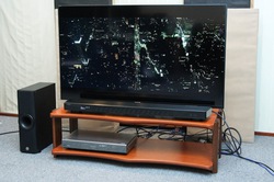 とても伸びやかな音で、低音域から高音域までリニアにつながっているような印象がある。HT-CT370に比べYSP-2500は、音数が段違いに多いように感じた。HT-CT370がチープというわけではないのだが、YSP-2500は音がしっかりと詰まっていて密度が高いという印象なのだ。サイズ的にはHT-CT370とほとんど同じだが、ビームスピーカーがしっかりと効いており、HT-CT370に比べて左右からの音の回り込みが大きい。視聴室の吸音材は幾分マイナス方向に作用したとは思うが、音場の広さは十分に感じられた。