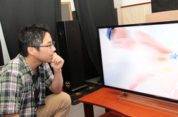3本目は比較的内容がおとなしく、ある意味で安心して見ていられた。ビットレートは3本中最高の69.10Mbps。うつぶせに寝転がり、ヘッドホンでアナログレコードを聴いているつぼみさん。そのうち、おもむろにTシャツを脱ぎ始めると、その下にはアイパッチビキニが現れ…という構成だ(アイパッチビキニという言葉を今回初めて知った)。この動画は、顔のアップのシーンが多いのが特徴。目のきらきらとした輝き、唇のウェットな質感までも、4Kカメラはリアルに映し出す。興奮度はいや増しに増すばかりだ。