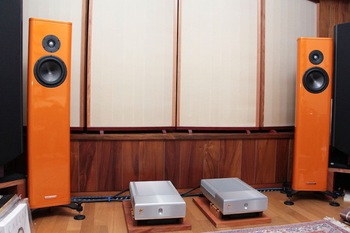 6mという長いスピーカーケーブルを使用しても、アンプとスピーカーが直結しているような音の鮮度の高いワイドレンジな音に魅了される。パワードモニターを使っているかのような感覚で、まさにこの点にアンプ技術が反映されているのである。曲の抑揚が中音量以下に変化すると、A級アンプの特性が生かされ、さらに艶やかな倍音が聴ける。特に弱音へと変化する旋律を聴くと、繊細さや倍音成分を維持しながら、静かに音が沈み込んで行く。非常にデリカシーに富んだ表現にも感激する。