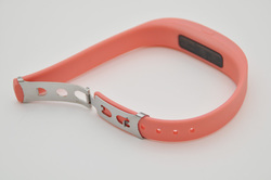 Bluetoothチップは低消費電力のBluetooth Low Energy(BLE)をサポートするほか、BLEに対応しないスマートフォンとの組み合わせでも使えるよう、従来版のBluetoothにも対応している。リストバンド側で蓄積したログデータは端末本体の転送ボタンを押してスマートフォンに送信する仕様だ。