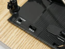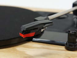 カートリッジと針は固定式ながら、信頼ある日本製を採用。背面板はスピーカーの振動がカートリッジに伝わらないようアーム部が浮いた構造を採用しており、プレーヤーとしての真撃な作り込みも見られる。アナログ音声出力を搭載しており、アンプ+スピーカーとの接続や、アクティブスピーカーと接続しても出力できる。