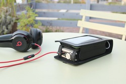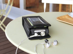 ただ、付属のケースは結構な厚みがあり、iPhoneを一緒に入れると、ちょうどファーストフードのバゲットサンド(野菜増量)の雰囲気。iPhone/iPodを何重ものベルクロでガッチリと固定するので、iPhone を頻繁に出し入れするといった使い方には向いていません。iPhoneと組み合わせて使うには、DA-10だけが入るケースを探したほうがよいでしょう。