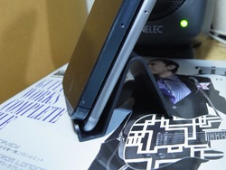 ということで、まずはリファレンス曲を試聴。なおスマートフォンは置き方や置く場所によって音が激変する。今回はスマホスタンドにスピーカー側を上に向けて立ててみたが、例えば吸音効果の強そうな布団の上にポンと置いた状態などだと、印象は変わるはず。その点はあらかじめ気に留めておいてほしい(逆に、スマートフォンはコンパクトでどこにでもどうとでも置きやすいので、その手法でその場その場で音を調整することもできる)。