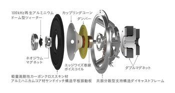 スピーカーシステムの「SB-C700」は、1986年に発売されたSB-RX50を想起させる、同軸平板ドライバーユニットを採用したブックシェルフ型スピーカーである。点音源とリニアフェーズを両立した、定位に有利な方式である。トゥイーターは軽量アルミ製のドーム型で、100kHzの超高域再生に対応する。