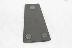 2番目の注目ポイントであるデザインについては、多くを語る必要はないだろう。美しい曲面を描くキャビネットはアルミ押し出し材を贅沢に投入しており、外見の美しさはもちろんのこと、剛性の高さも疑いようがない。わずかにスラントしたフォルムはデスクトップ設置時に最適な角度を実現しやすく、薄型のインシュレーターとの一体感も秀逸だ。下部を絞り込んだ形状から安定性を心配する人がいるかもしれないが、重心の低い重量バランスが功を奏し、実際にセッティングしてみると外見から想像できないほど安定している。振動吸収効果の高いネオフェード&カーボンクロスの複合素材を用いたインシュレーターと本体の密着性が高く、滑りにくい点にも注目したい。