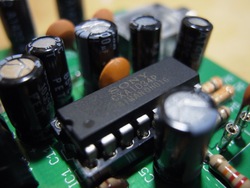 その「そのもののパーツ」であり本機の核となっているのはアンプICつまり増幅素子の「SONY CXA1034P」。これが音声信号をヘッドホンレベルにまで増幅する役割を担う。