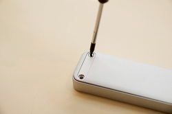最初に、本体背面に10箇所でとめてある星形のネジをペンタローブドライバーで取り外す。こちらも長さの違うネジが混ざっているので、デスクの上をキレイに片付けて白い紙を敷き、その上に後から戻しやすいよう位置を揃えてネジを並べておいた。