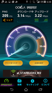 スピード測定用のアプリにはAndroid版「OOKLA」を使用した。今回は2週間ほどサービスを試用してみたが、テストの初日と2日目は日中に上下2Mbps前後のスピードしかでなかったので、日本通信に問い合わせてみたところ「サービスを開始して間もないことや使い始める人が急に増えたことで、昼休みや通勤等の時間帯が一時的に混み合っていて速度が出にくいようだ」という回答を得た。その後、夜の23時以降に改めて速度を測ってみたところ、下りで35Mbps前後、上りも15Mbps前後という納得できるスピードが出た。