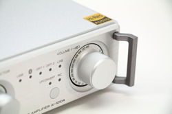 メインユニット「AI-101DA」の実物を手に取り設置を始めると、1.2kgという見た目以上の重量感もあって、カジュアルな入門機というより、むしろ堅牢なオーディオ機器の設計という印象を受ける。アルミ製のキャビネットに、フロントパネルや操作ノブもアルミ削り出し。実機を手にとって操作してみると、特に電源つまみのメカニカルな機構は、エントリークラスの機器には異例な質感へのこだわりを感じさせる。