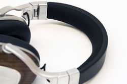 ハウジングには天然のアメリカン・ウォールナット材を使用。イヤパッドとヘッドバンドには日本のサプライヤーとともに新開発したという人工皮革が用いられている。また、金属のスライダーやアーム、ヒンジ部はしっかりとした作りで、多少ラフに使っても耐えうるはずだ。手に持つとコンパクトながら、適度な重量感がある。小型一眼レフカメラのような、プロダクトとしての高い密度を感じる。