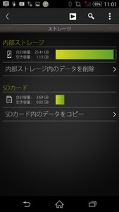 音楽ライブラリをスマートに管理できる補助機能も充実している。例えばスマートフォンの内蔵メモリーに保存した不要な音楽ファイルを削除したり、SDカードから内蔵メモリーへの音源のコピーがアプリから行える。各ストレージの残量は数値とグラフで把握できるようになっている。