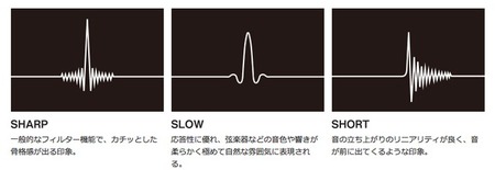 一方で、音質やサウンドキャラクターに関しても、いくつかのカスタマイズが行えるようになっている。たとえば「LOCK RANGE ADJUST」は、ロックレンジの精度をコントロールしてジッターノイズを軽減するもの。さらに、高域特性を変化させる「DIGITAL FILTER」(カチッとして骨格感が出る「SHARP」、音色や響きが柔らかく自然な雰囲気になる「SLOW」、音の立ち上がりが良い「SHORT」から選択可能)や、最大192kHzまでのアップサンプリング機能も搭載されており、環境や好みに合わせて音質を調整することができる。