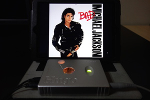 せっかくですので、ハイレゾ音源を含む音源が本当にスペック通りに再生されているか、手持ちの音源で確かめてみました。ちなみに、写真のiPadに表示されているのはJRiverで再生中の音源のアルバムアートです。「JRemote」というアプリを使ってJRiverをコントロールしています。