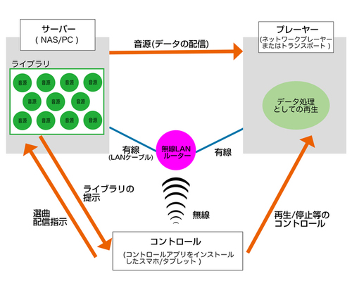 次に、ネットワークオーディオのシステムを下図に示します。