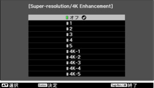 4Kアップスケーリング機能のメニュー