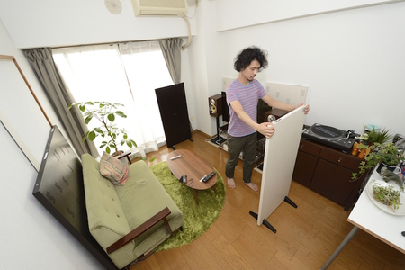 前方2枚と後方に1枚で十分に満足した様子の小澤。ここまでで“生活を邪魔しないでいい音を楽しむ”という当初のテーマは達成したようだ。さてここからは好奇心の探究となる。両サイド、スピーカーの1次反射の部分に、さらに2枚追加したらどうなるのだろうか?試してみることにしよう。これで6枚すべてを使い切ることになるのだ。