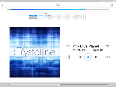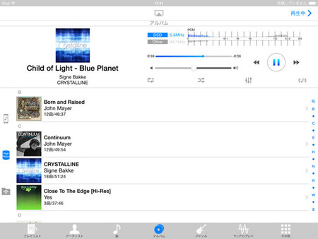 端末に保存されたライブラリでは、選曲のためのアイコンにすぐアクセスできることもあり、聴きたい曲にすばやく辿り着くことができる。PCM 352.8kHz/24bitやDSD 11.2MHzのように高いスペックの音源を再生した際も動作に不安定な部分はなく、操作に関してはCD相当だろうとハイレゾだろうと両者の差を意識することはない。