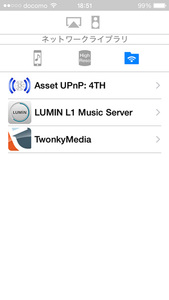 「ネットワークのライブラリ」を選ぶと、同じネットワークに接続されたサーバーの一覧が表示され、そこからのブラウズは各サーバーが提供するナビゲーションツリーに基づくものとなる。(ナビゲーションツリーについてはこの記事を参照)