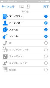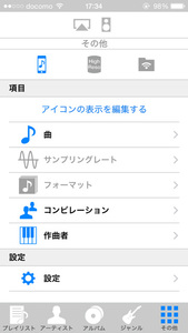 アーティスト・アルバム・ジャンルなどの基本的なものに加え、「その他」ではサンプリングレートやフォーマットといったNe PLAYERならではの項目も用意されている(サンプリングレートとフォーマットはNe PLAYERのライブラリでのみ使用可能)。
