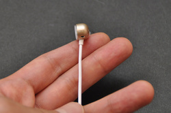 実際、N20は装着感がとても心地良いイヤホンだ。耳にハウジングが当たるときのしっとりとした質感と、軽量な本体。ケーブルはプレーヤーからY字のスプリット部分までは、絡みにくいよう布地素材を採用。そこから耳元まではタッチノイズを軽減するため樹脂製の被覆に変えている。垂直に伸ばしたケーブルに対して、ハウジングをやや後ろ側に傾けたデザインが耳元の柔らかい装着感を生み出すとともに、全体のデザインにテンポの変化をつくり出している。今回はゴールドのN20を借りてハンドリングする機会を得たが、iPhoneのゴールドとのカラーマッチングもばっちりだ。