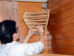 山下さんは、フックを壁に取りつけてから、額に入った絵を掛けるような感じで2個の「アンクIV」をセットした。床に立てるパネル・タイプは部屋を狭くするし、掃除のときに邪魔だが、これならそんな気遣いは無用だ。