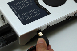 まず、USBケーブルを本体とPCに接続。テスト時にはXLRケーブルで接続したのだが、本機の入出力端子はしっかりとした剛性感があり、さすがはプロ機だなと実感する。