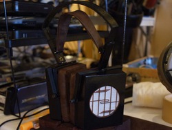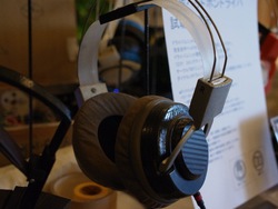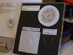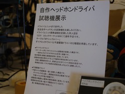 ビンテージなポータブルオーディオアイテムを積み上げていることでおなじみのサークル「Music With 規格外」のブースにドライバーから何から全て自作の平面駆動型ヘッドホンという非常識なアイテムが展示されていた。