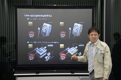 イベントで製品を紹介したロジテック(株) 開発部のAV課・大場民樹氏は、本機が様々な「挑戦」の果てに誕生した製品であることをアピールした。