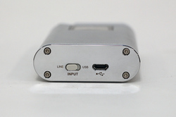 背面の上下2箇所には、ラバー系クッションが水平に細長く付けられており、DAP等と重ねて使用する際の傷つき防止に配慮されている。底面にはLINE/USBの入力切替えが装備されているが、光/同軸等のデジタル入力はない。一方、変換/接続ケーブルの類は一通りが同梱された。電源スイッチは本体の左側面にあり、誤動作を防ぐLOCKスイッチと並んでいる。ボリュームは各種ファンクション切換えスイッチを兼ねたローレット方式だ。そのノブとクロームメッキ仕上げの天面とが美しいコンビネーションを描いている。