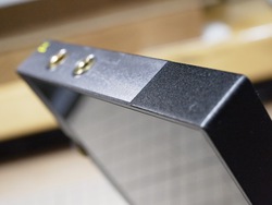 DP-X1の上部。イヤホン端子周りだけ色と仕上げを変えてアクセントを付けている