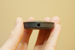 側面には3.5mmのアナログ音声/光デジタル音声兼用端子が付いている。反対側には給電のためのmicro USB端子も搭載。バッテリーは内蔵されていないので、使う時にはUSB経由で常時給電が必要だ。本体に同梱されているライム色のケーブルはアナログオーディオケーブルなので、光デジタル出力を利用する場合は、別途Mini-TOSLINKのケーブルを用意する必要がある。