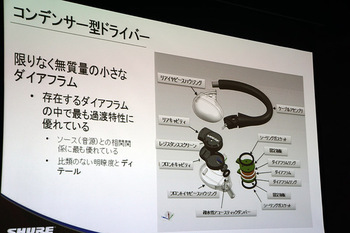 しかし複数のユニットをクロスオーバーさせることで位相のずれや歪みが生じるというデメリットもある。単に多数のドライバーを組み合わせただけでは、色付けや定位の正確さを欠くなどの問題が起こってしまう。だからこそSHUREは、このデメリットを解消するために、ひとつのユニットで広帯域再生が実現できるコンデンサー型に活路を見出したのだ。