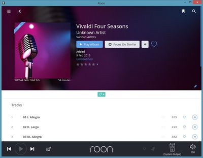 残念ながらGiuliano CarmignolaによるVivaldiの『四季』はRoonでも情報が見当たらなかったようだ。ただ、こうなった場合でもいくらでも手の打ちようはあるので、今は先に進むことにする。