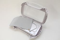 その点「AT-SPP400W」のしくみはシンプル。本体のなかにiPhoneを入れて、3.5mmステレオミニジャックをiPhoneのヘッドホンジャックに挿し込むだけで使える一体型ボディです。