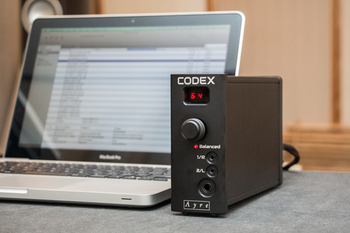 このPono Playerを通して、Ayreはヘッドホンリスニングの世界にも深い理解を得たはずで、そのノウハウがAyreブランドの製品にも投入されることが期待された。そして今年に入り、期待は現実のものとなった。5.6MHz DSDや384kHz/24bit PCMの再生対応したUSB-DAC、デジタル・プリアンプ、そしてバランス駆動対応ヘッドホンアンプまでをひとつにまとめた「CODEX」の登場である。