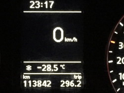 いよいよ目的地ロヴァニエミに到着。まず驚かされたのはその気温だ。機内の外気温時計ではヘルシンキが-14度だったのに、ロヴァニエミでの表示はなんと-28度!酷寒の地に着いたことを知った瞬間だった。