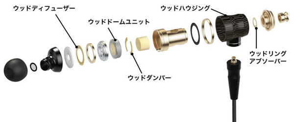 また、エントリー機のHA-FX650を除く3モデルでは、“ウッドリングアブゾーバー”も採用。ノズルの音の出口付近に設けた同パーツでハウジング後部のブラスリングに伝わる不要な振動を吸収し、筐体の響きを最適化する。