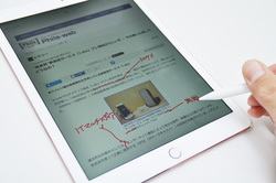 Apple Pencilのスムーズな描き心地は前評判通りで、満足している。自分が担当した雑誌記事の校正チェックも、PDFファイルをアドビのAcrobat Readerで開いて、Apple Pencilで赤入れ、ファイルを保存し直してメールで返信というシンプルなワークフローでスムーズに対応できそうだ。手描きの文字入力が正確に反映されてしまうので、もっとキレイな文字を書けるよう修行が必要と実感しているのだが…。