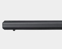 早速42型の薄型テレビを設置したテレビラックの前に「Solo 5 TV」を置いてみると、小型スピーカーに定評のあるボーズの製品らしい極小サイズと、薄型テレビとのマッチングの良さを実感できる。奥行きはわずか8.6cmで、テレビの前だけでなくテレビラックの中にもピタリと収納できるサイズだ。548W×70H×86Dmmの寸法は、40型クラスの薄型テレビに最適。質量も1.7kgと軽量化されており、女性でもセットアップしやすいだろう。