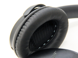 装着スタイルはQCシリーズ伝統の、イヤーカップが耳全体を包み込むアラウンドイヤーだ。その名前に“Comfort(心地よさ)”を冠するほどなので、快適な装着感は折り紙付き。QC35ではさらに、高級車のシートなどによく使われている人工皮革「アルカンターラ」をヘッドバンドの内側に採用している。