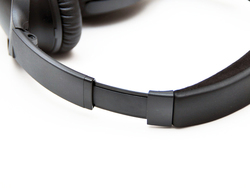 イヤーカップには薄く成形したアルミニウムを、アームやヘッドバンドにはガラス繊維を混ぜ込んだ強化プラスチックをそれぞれ採用している。手に取ると、ある意味「これで強度は大丈夫なのか?」と心配になるほど本体が軽く、ヘッドバンドが柔軟に稼働する。ポータビリティと堅牢性のバランスについては十分に考え抜かれているようで、負荷のかかるヘッドバンドのバネや回転部分にはステンレススチールを採用し、取り回しのよさと耐久性を両立させた。